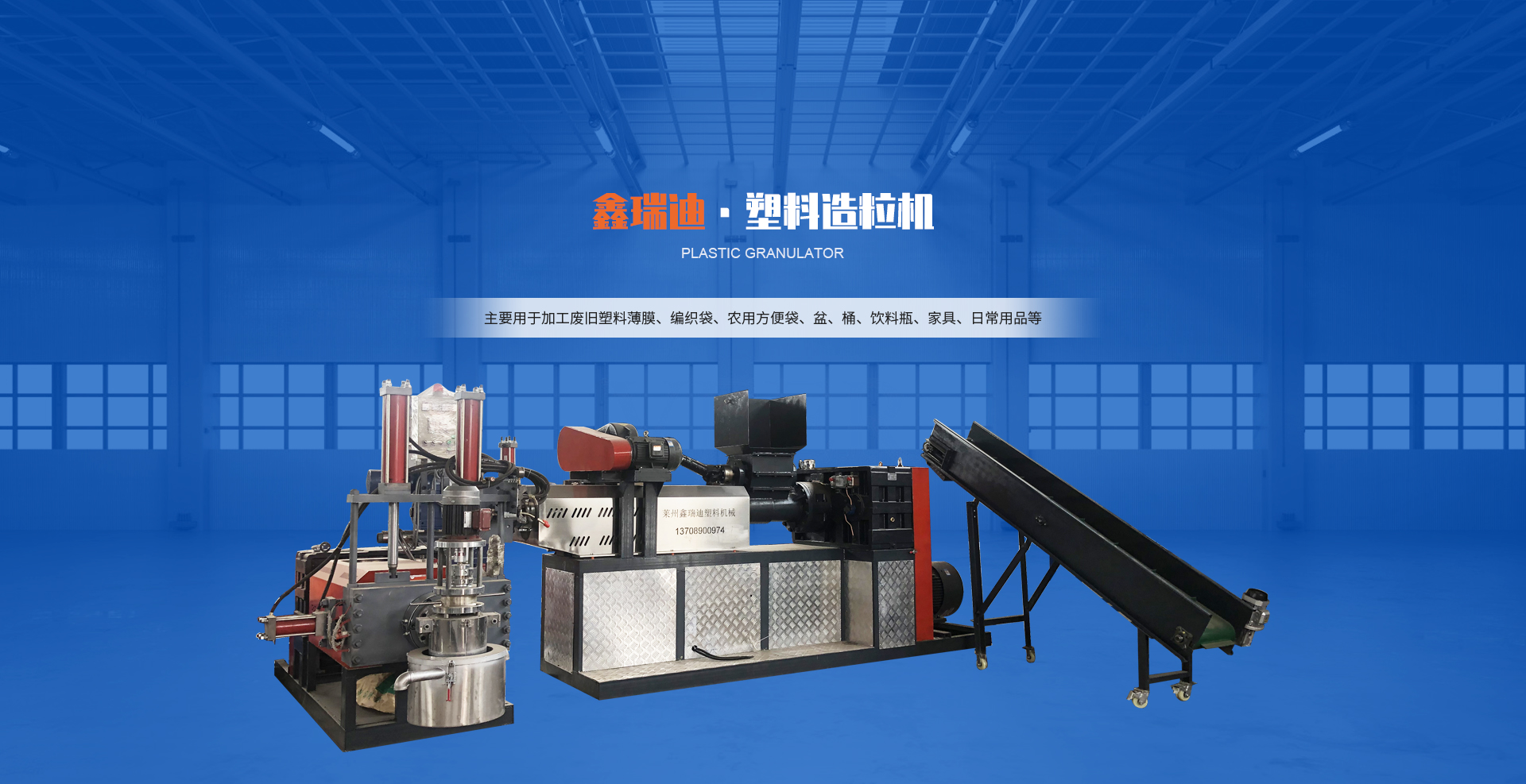 主要用于加工廢舊塑料薄膜(工業(yè)包裝膜、農(nóng)業(yè)地膜、大棚膜、啤酒包、手提袋等)、編織袋、農(nóng)用方便袋、盆、桶、飲料瓶、家具、日常用品等,適用于大部分常見的廢舊塑料